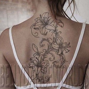 Details About Grayscale Lily Flower Sketch Drawing Temporary Tattoo Body Art Sticker Tatouage